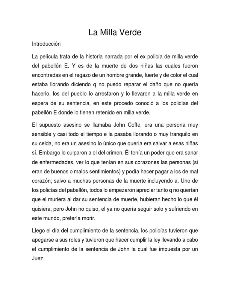 La Milla Verde Pdf / Calificación de 3.00 de 5 con base en 1 opinión.. La milla del conocimiento como sistema ?· aumenta la satisfacción del cliente en la última milla. La escalofriante historia de la milla verde, originalmente publicada en seis entregas, se reúne por primera vez en un solo volumen. En el idioma español y en distintos formatos. Scarica pdf la milla verde gratis � facile e immediato il download di libri in formato pdf e epub. Download as docx, pdf, txt or read online from scribd.